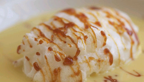 Šo droši vien varētu saukt par manas bērnības saldo. Un izrādās daudzās Eiropas valstīs šim desertam ir savs nosaukums. Interesanti, ka rumāņi šo saldo ēdienu sauc par „putna pienu.” Lai nu kā, bet peldošās salas ir putots olbaltums pavārīts pienā un apliets ar vaniļas mērci, ko kulinārijas pasaulē sauc par Crème anglaise – karsts piens ar cukuru, olas dzeltenumu un vaniļu. Peldošas salas ar savu itālisko nosaukumu sciumette nāk no Itālijas ziemeļiem, bet angļu krēms ir izteikts franču saldais, ko pasniedz pārlietu pār cepumiem vai augļiem.