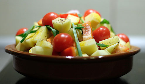 Nedaudz tālāka un līdz ar to lielāka eksotika ir radusies Ziemeļāfrikas tuksnešos – tadžina. Iedomājieties paši – ēst sautētu burkānu, kurš ir mīksts un burkāna krāsā, vai tomātu, kas izskatās pēc tomāta, nevis izšķīdis kečupā. Un tas viss tādās interesantās garšvielās kā kurkums, safrāns, koriandrs, fenhelis vai anīss. Tadžinu mājās vajadzētu katram, kas ar virtuves lietām ir uz jūs, jo tadžinā ēdiens vienmēr būs garšīgs, ir jābūt lielam meistaram, lai to piededzinātu un tur ir ļoti daudz iespēju variēt un eksperimentēt. Dažādi gabalos sagriezti dārzeņi ar liellopa, vistas, jēra gabaliņiem vai pat trusi. Plūmes, bumbieri, citrons, banāns, medus un jau pieminētās vai jebkuras citas garšvielas. Ieliec visu tadžinā, pielej nedaudz ūdens un kad gaļa gatava, tad arī viss ir gatavs. Pat jāmaisa nav.