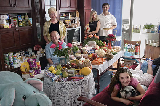 Vairākus gadus atpakaļ amerikāņu fotogrāfs Peter Manzel devās apkārt pasaule, lai noskaidrotu – cik tad daudz dažādu valsts ģimenes nedēļā tērē uz ēšanu, ko viņi ēd un to visu arī nofotografēja. Grāmata saucās – Hungry Planet: What World Eats. Viņš ir vairākas balvas ieguvis fotogrāfs, un pirms šīs ēšanas grāmatas, tika izdotas divas līdzīgas. Viena, kurā ģimenes tika nobildētas viņu māju priekšā ar visu iedzīvi. Otra par pasaules sievietēm, viņu ģimenēm, bērniem un darbu. Visās grāmatās ir bildes, fakti un populāru žurnālistu esejas.