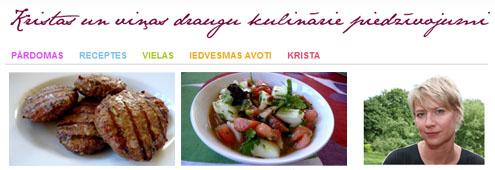 “Ēdiena gatavošana ir dzīvības turpināšanai vitāli nepieciešama funkcija, kur prieku sniedz gan process, gan rezultāts. To var izbaudīt ar acīm, garšu, tausti, smaržu un citām maņām. Tas ir veids kā iepazīt citas kultūras. Tā ir pārsteigumu pilna radoša nodarbe, kurā dalīties ar mīļoto cilvēku. Vārdu sakot, gluži kā sekss.” Krista, iespējams, ir vienīga latviešu kulinārijas blogu autore, kura var lepoties, ka ir izdevusi grāmatu. Lai arī otrādi nekā pasaulē pārsvarā notiek, bet tomēr iespaidīgi. Blogā ir daudz recepšu ar bildēm, ceļojumi par citu valstu virtuvēm un… Mjā, šī bloga kvalitātes apliecinājums ir tas, ka sieva man nosūta linku no turienes ar tekstu – šo vajadzētu pamēģināt.