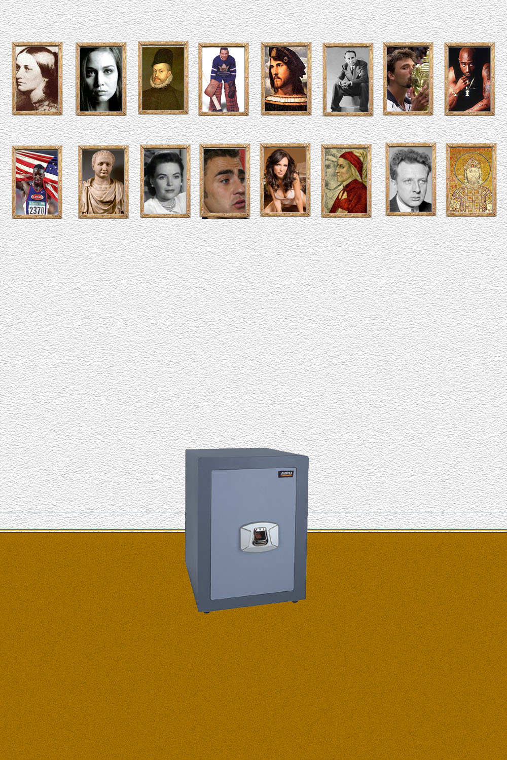 Uzdevuma atvieglošanai bilžu varoņi pie sienas ir gan Bizantija imperatori, gan mūsdienu dziedātājas, tenisa zvaigznes un pasaules rekordisti sprintā, prono zvaigzne un orķestra diriģents, slaveni hokejisti un Spānijas karalis. Ja jums nevedīsies ar minēšanu, tad došu mājienus uz šīm personām precīzāk. Tā kā sienas ir nenozīmīgas, tad visa koda būtība slēpjas šajās bildēs. Tās nocelšana no sienas nedos nekādus bonusus. Uzlikšana atpakaļ arī nē. Veiksmi, mister Gorski.