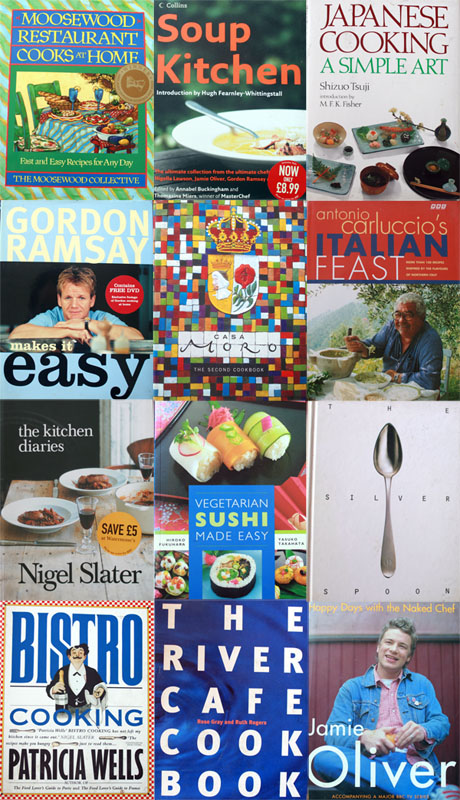 Katru reizi ieejot grāmatu veikalā noeju gar pavārmākslas un recepšu grāmatu stendu un apskatos, bet sasodīts, viņas ir tik dārgas, bet tik un tā dažas man ir. Tā pat Amazone man ir atsūtījusi divpadsmit superīgas veģetāras receptes, jo esmu tādas grāmatas tur pircis. Bet liels bija mans prieks ierodoties īrētajos apartamentos Nicā. Ne jau tāpēc ka viņi bija lētāki kā viesnīca, ne jau tāpēc ka tur bija 20 grādi pēc Celsija, bet gan tāpēc ka tur bija visas pavārgrāmatas kuras es gribētu sev. Lūk jums neliels ieskats viņās.