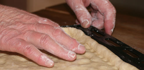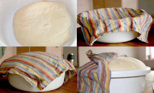 Tad sākas mīcīšana. Lielākajā bļodā (kāju bļodā) tik iebērti gandrīz visi divi kilogrami, atstājot drusku lai varētu pieregulēt un vēl dažādām tehniskām lietām, piesistas trīs olas, dažas šķipsnas sāls un margarīna ūdens. Un mīcīt, kulstīt, klopēt un bakstīt uz nebēdu, pievienot uzrūgušo raugu, šļuku eļļas, un atkal mīcīt, kulstīt, klopēt un bakstīt, līdz tas viss smuki atlīp no pirkstiem un tiek iegūta vienmērīga saturīga masa. Ja pa cietu, pievienojam vēl ūdeni, ja pa mīkstu – miltus. Kāpēc ne pienu? Piens padarot garoziņu cietu. Beigās apkaisām ar miltiem, dvieli un gaidām līdz līdīs laukā.