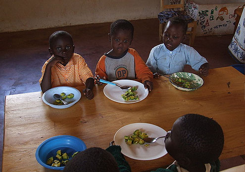 Jā, arī Kenijā bērni iet skolā, mācās un ēd pusdienas. Avokado ēd pusdienās. Izklausās ļoti trūcīgi, bet avokado ir ļoti barojošs.