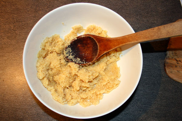 - 120 grami (½ glāze) – gaiši brūnais cukurs