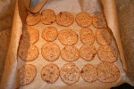 Cepešpannai liekam virsu divas kārtas ar cepamo papīru un liekam cepties uz 18 minūtēm, vai ari kamēr smuki brūni. Jārēķinās, ka cepumi palielinās savu apjomu un tāpēc tie uz pannas jāizkārto gana reti. Ņemot nost cepumi tie vēl ir mīksti, tāpēc prātīgi, vai arī ļaujiet tiem nedaudz padzist un otru porciju lieciet iekšā uz citas pannas. Kā jau minēju, riekstus var atstāt veselus, vai daļu samalt un daļu veselus, var likt klāt ciedru riekstus, un jebkādus citus. Šokolādi rīvējot cepumi būs brūni, brūni, bet atstājot gabaliņos tie smuki izcelies uz gaiši brūno cepumu fona.
