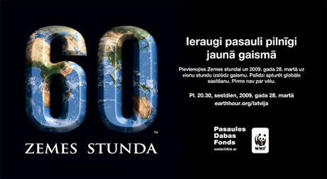 3366635714_cb53776b8c_m.jpg2009.gada 28. martā plkst. 20:30 Pasaules Dabas Fonds rīko akciju Zemes stunda, kuras laikā katrs ir aicināts uz vienu stundu izslēgt apgaismojumu, lai simboliski pievērstu uzmanību klimata pārmaiņām un demonstrētu vienotu nostāju Kopenhāgenas ANO galotņu tikšanās dalībniekiem, kuri 2009.gada beigās lems par jaunu globālo vienošanos klimata pārmaiņu jautājumos.