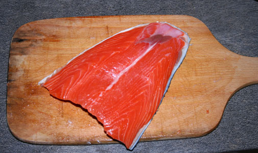 Receptei ir vajadzīgs lasis, rīvmaize, sīpoli, sinepes, ķiploki, pēterīļi un defaultās lietas – eļļa, sāls un svaigi malti pipari. Īstajā receptē ir vajadzīgs nevis parasts sīpols, bet Askalonijas sīpols vai šalote, nevis šādas tādas sinepes, bet Dižonas sinepes, nevis ķiploki, bet smalkie kaperi. Man toties bija parasti sīpoli, parastas sinepes un kaperu vietā ķiploki, ko biju atvedis no Spānijas – nedaudz stiprāki par mūsu veikalos iegūstamiem. Kā arī nepirku laša fileju, bet gan astes, jo receptes komentāri par to cik tas lasis ir dārgs, man pamudināja izmēģināt lētāku variantu.